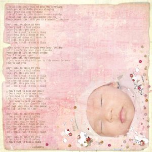 Her skulle man scrappe en sang som man mente gav mening. Jeg har scrappet Aerosmiths “Don’t want to miss a thing”. Jeg har scrappet den før men jeg mener stadig at den på bedst mulige måde beskriver den følelse man har inden i som nybagt mor. Jeg kan stadig blive helt rørstrømsk når jeg hører den.
