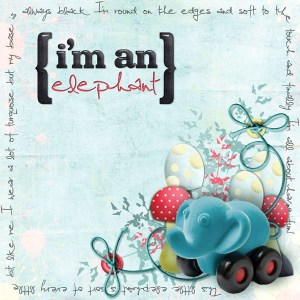 Credits: Papir, svampe, snor og alpha er fra K Studio – Little Daydreamer, ukrudts stempel er fra mig selv og kan købes HER. Elefanten er fra lavet af firmaet Rubbabu og kan bl.a. købes i Zoo Kbh. 😉 Fonten hedder Pea Jordan.