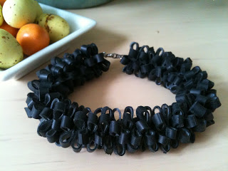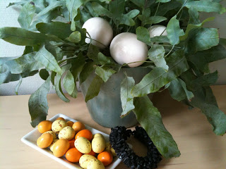 Tre fine porcelænsæg til ophæng – skal lige ud og ha’ klippet et par grene, men indtil videre må de ligge i “fugleredeplanten”.. Lækre dragee æg, som desværre nok alt for hurtigt får ben at gå på, og et virkelig skægt gummislange armbånd, som jeg allerede glæder mig til at lære at gå med. Det fylder jo lidt sådan eet, men det er lige min farve (sort) så mon ikke jeg hurtigt får taget på det. 😀