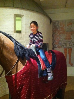 I løbet af de timer vi var derinde var vi omkring både den gamle skolestue og et persisk marked.. Det kriblede lidt i Laura, da vi nåede noget til noget om middelalderen, hvor der stod en hest man kunne prøve, ansigtsudtrykket er dog lidt betuttet, for hun mente at der var lige lovlig langt ned..