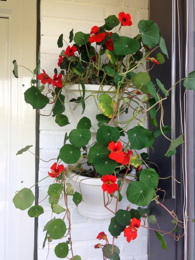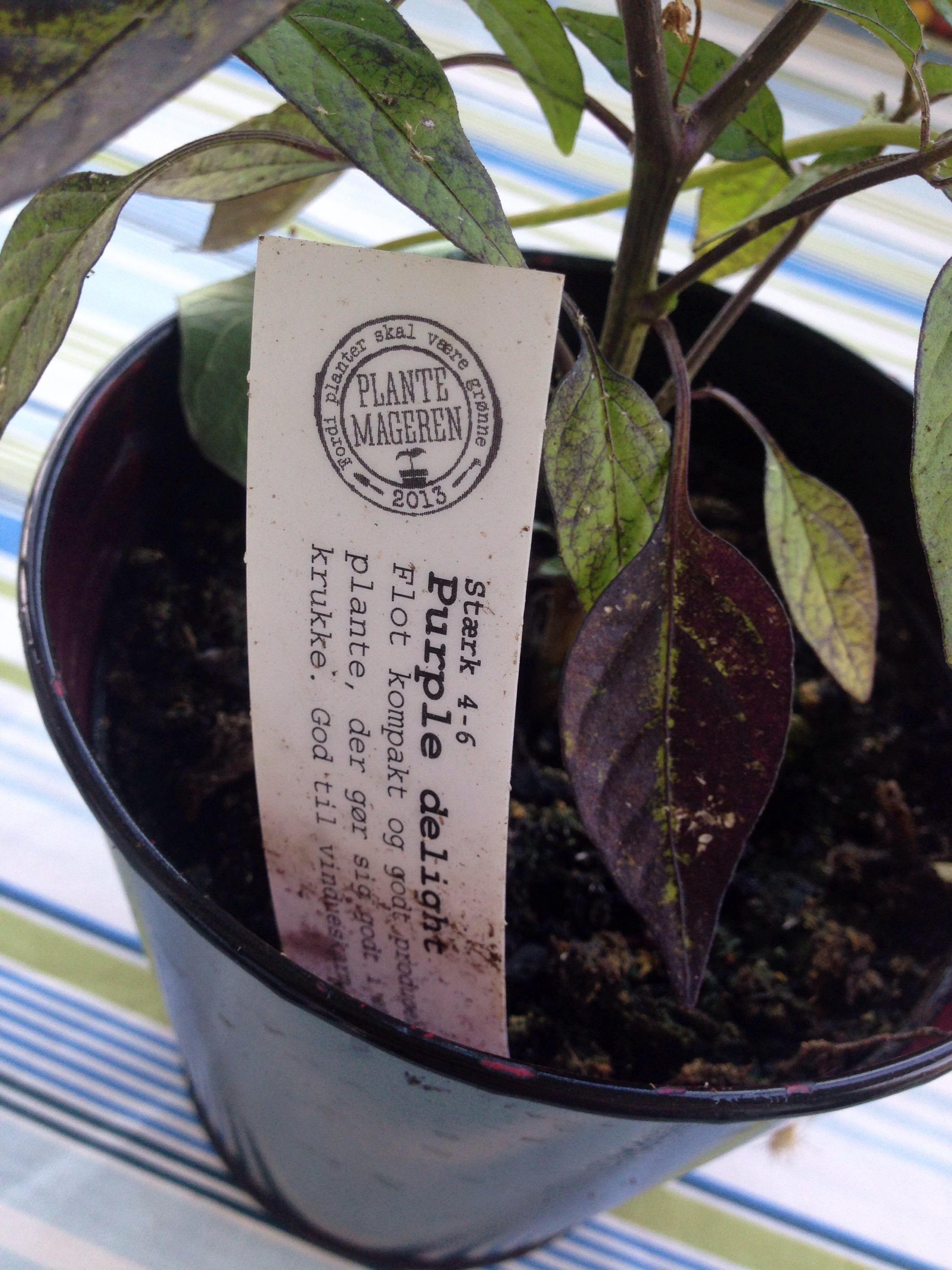 Nåmen hvorom alting er, så måtte noget nyt til. Jeg havde egentlig tænkt at det skulle være store lækre petuniaer eller måske fuchsia i vægpotterne, men da vi endelig fandt en planteskole der rent faktisk havde lidt at vælge imellem var det en tallerkensmækker der kom med os hjem.