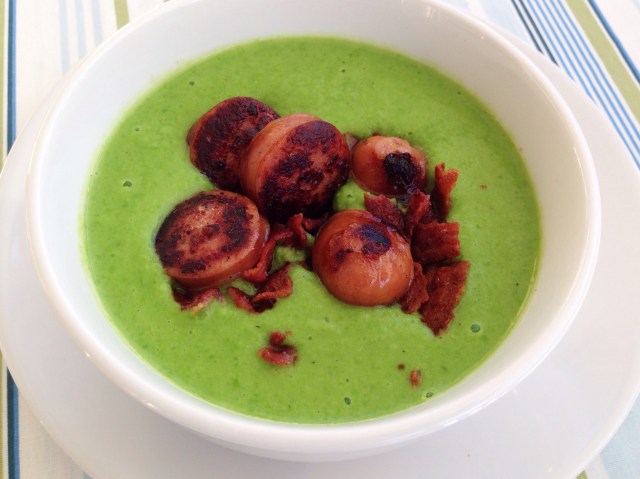 Jeg lavede første gang denne suppe, da Gåsebarnet var 3-4 år gammel. Jeg har lavet den et væld af gange, og hun elsker den. Det jeg selv bedst kan lide er, at den smager ærligt. Der er ikke en masse dikkedarer, og ærtesmagen bliver ikke skjult af en masse andet. Når den så tilmed kan laves på nogenlunde den tid det tager at stege en pakke bacon, er det ren win/win i min bog.