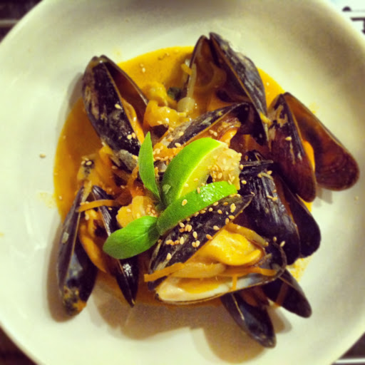 Louisas opskrift skulle have hvedekerner, man da min blot var en forret, undlod jeg dette. Muslingerne var store og flotte og retten smagte virkelig godt. Dog vil jeg nok putte lidt mindre i næste gang – Den Kinesiske Købmands karry sparker åbenbart pænt meget røv, og de 2 tsk (med lille top) som jeg brugte, var i overkanten af, hvad min sarte mund kunne klare.