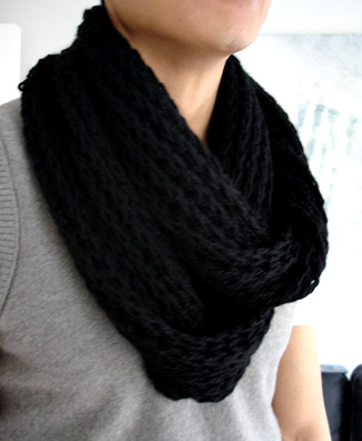 Jeg ville gerne lave et tørklæde til Martin. Sådan et som er sammenføjet i begge ender og bare skal vikles rundt en gang eller to.