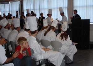 Nåmen efter al denne navneopråbning er der altid nogle gaver der skal deles ud til dem der har gjort sig særligt bemærket. Her blev jeg den lykkelige indehaver af prisen for klassens bedste kreative ret, og fik en fin kobbergryde i gave.