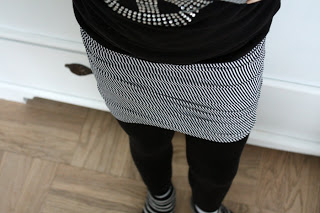 For et par uger siden faldt jeg over en super cool sort- og hvidstribet Alexander Wang inspireret nederdel, som Rappedikkes datter havde syet. Jeg tror den ville gå rent hjem hos gåsebarnet, og bestemt også godkendt hos moderen.. Og så tror jeg endda, at jeg selv kan finde ud af at sy den.. 😉